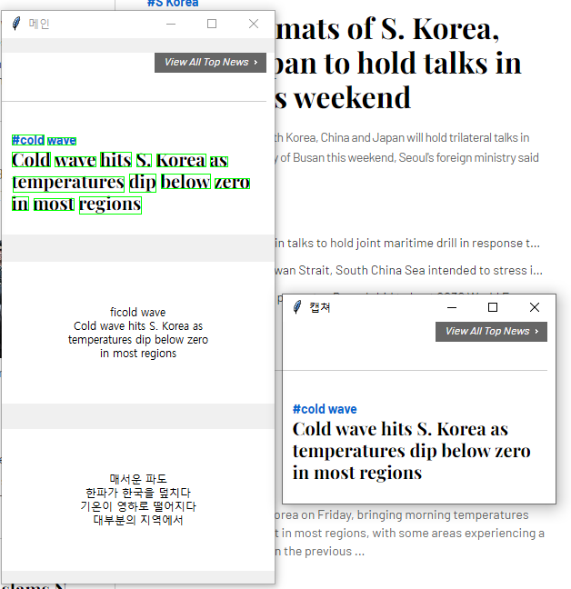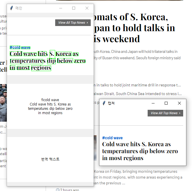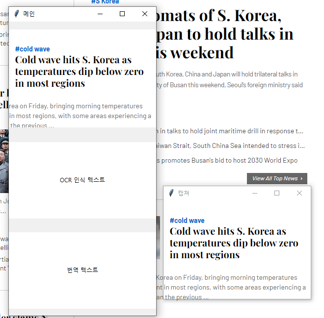 - GUI로 캡쳐한 화면, 인식한 문자, 번역된 문장을 표시한다.
