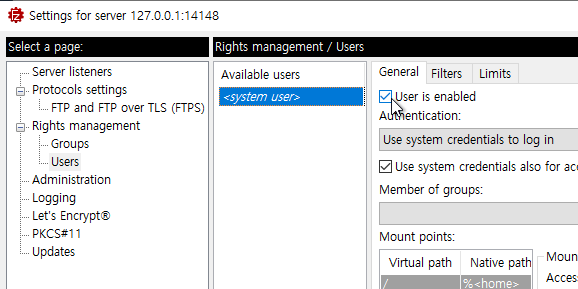 Windows에서 Filezilla 서버를 사용할 때, Administrator 계정으로 접속이 되지 않을 때가 있다.
